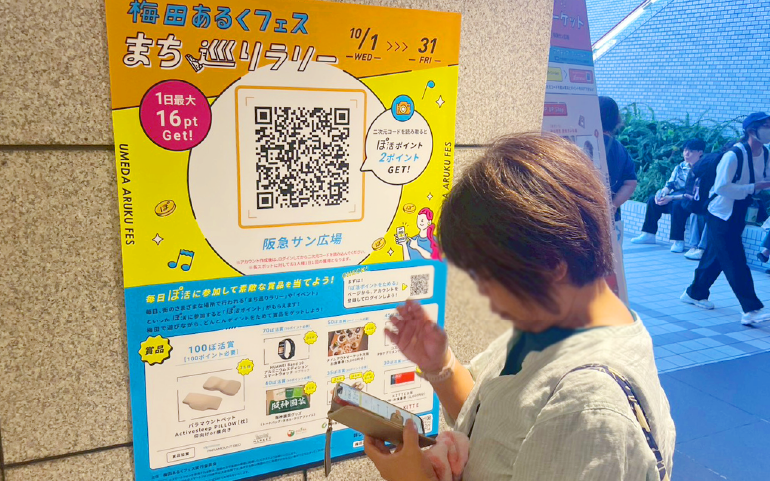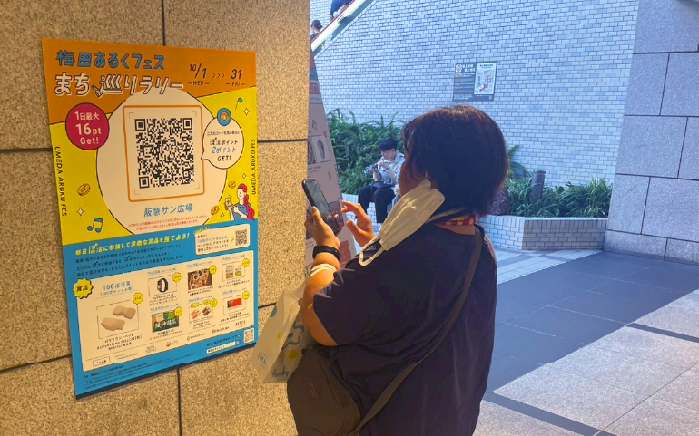 「梅田で あるく 楽しむ」をテーマに、まちをスマートフォン片手に