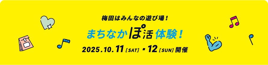 「てくてく わくわく 梅田日和」をテーマに、梅田を巡ってまち遊びをしながら、いつもの梅田で新たな楽しみを発見してもらえるようなイベントを開催しました。梅田エリア内の施設等との連携イベントや、梅田の3つの会場でカルチャーやスポーツ、食にまつわる特別な「ぽ活」を体験できる2日間だけの限定イベントなどを楽しんでいただきました。